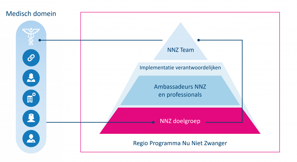 NNZ Team. Nu Niet Zwanger is bijna overal in Nederland beschikbaar. Elke GGD heeft een NNZ-team dat het programma in de regio uitrolt met daarin inhoudelijk coördinatoren die contact hebben met cliënten en samenwerken met professionals uit het medisch en het sociaal domein.